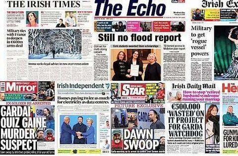 The Irish Independent leads with households in Ireland paying almost twice as much for their electricity as data centres.