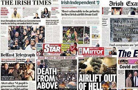 The Irish Times, Irish Independent and Irish Daily Mirror lead with the war in Iran as the Government works to bring stranded Irish people home.