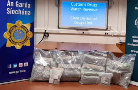 Approximately 23kg of herbal cannabis and 3.3kg of cannabis resin, worth an estimated €480,000, was discovered in luggage at the airport on Sunday.