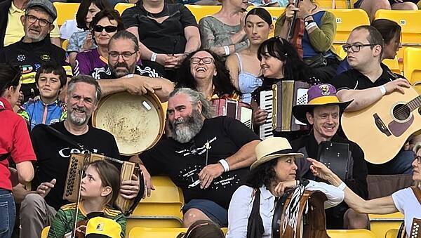 The world record-breaking Ceile Band playing at Wexford Park during the Fleadh.