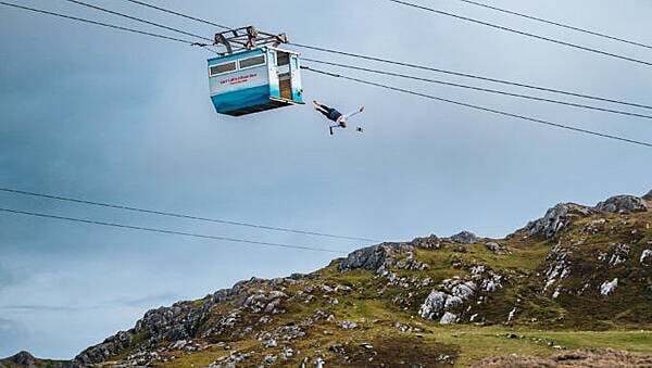 Part of the challenge was the swinging movement of the cable car - which made maintaining balance and making the jump all the more difficult.